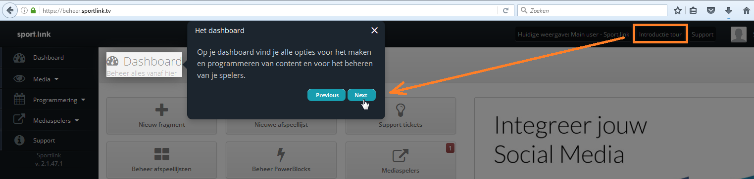 Helemaal bovenin iedere pagina (zwarte balk) zit een knop "Introductie tour", klik daarop bij het eerste gebruik. Daarmee word je stap voor stap door het gehele systeem geleid.