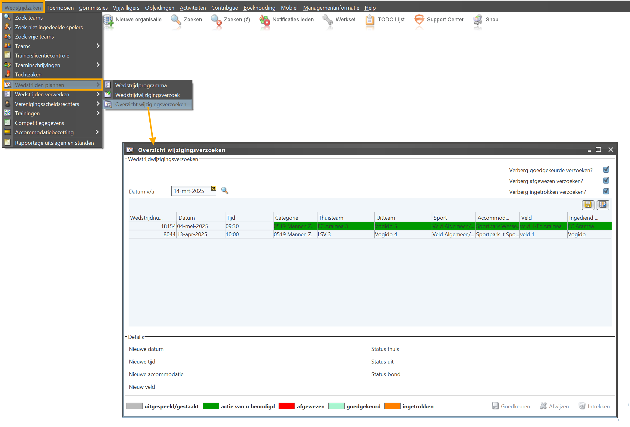 Ga naar het Wedstrijdzaken | Wedstrijden plannen | Overzicht wijzigingsverzoeken